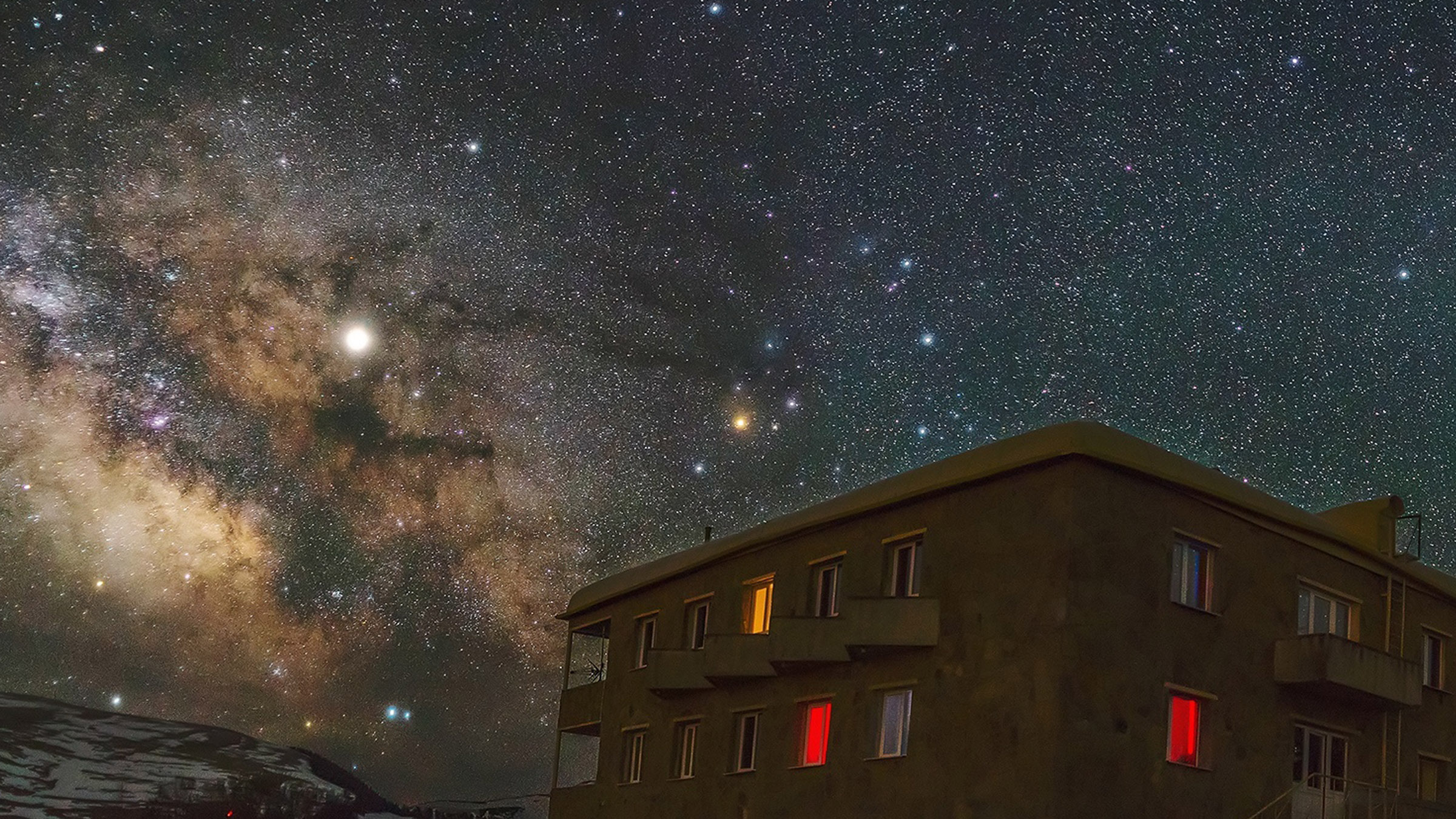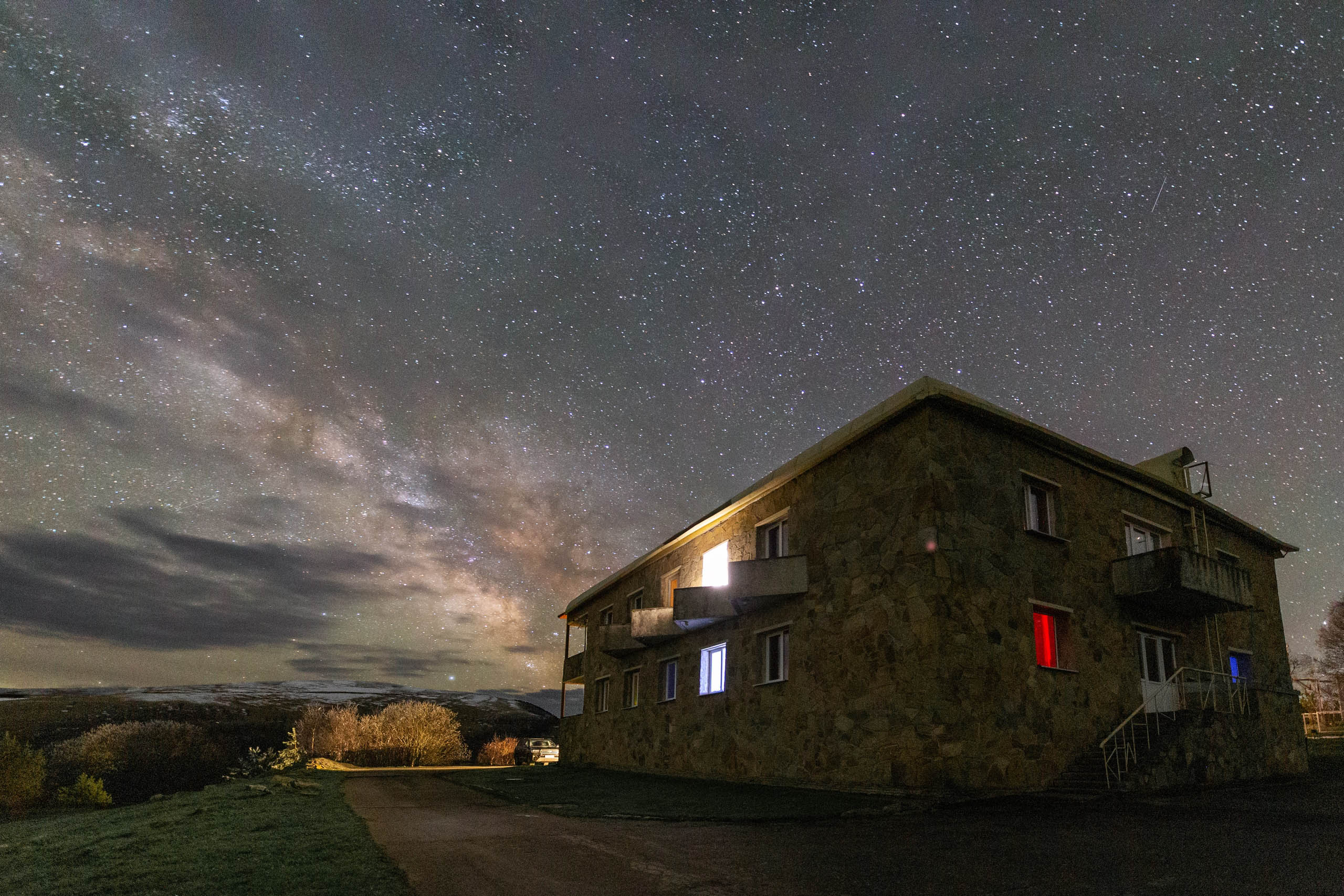 Гостиница расположена в 700 метрах от обсерватории, где проходят наблюдения, лекции и приемы пищи. Номера расположены на 2 этаже.